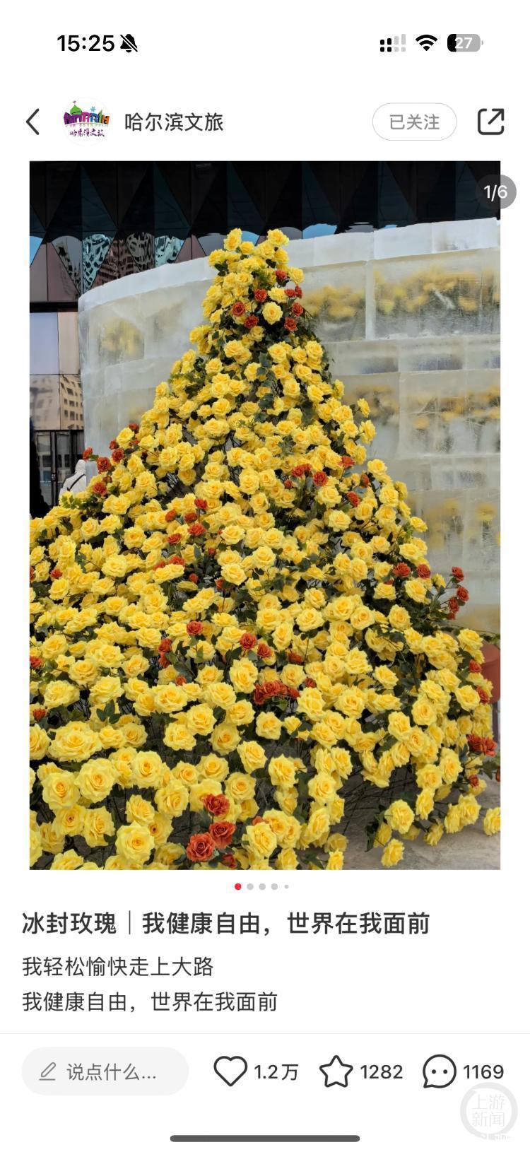 哈尔滨文旅部门在酬酢平台发文宣传“冰封黄玫瑰”景不雅。 聚集图