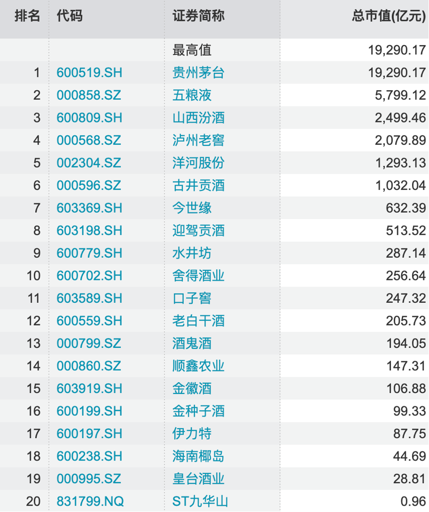 在A股20家白酒企业中,水井坊的总市值为287亿元,名秩序九。市值TOP10的酒企当中,名次终末的舍得酒业和水井坊与前八位差距较大。