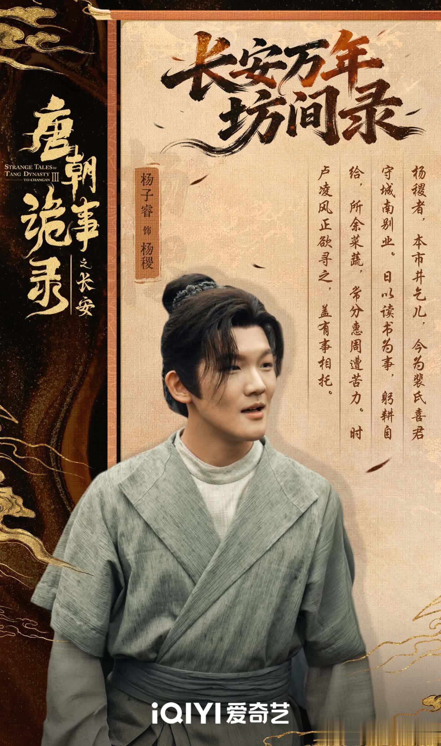 3、杨子睿饰杨稷杨子睿饰杨稷,是《唐朝诡事录》中在》“参天楼案”出现的,他那时是一个街边的小叫花子,因卢凌风要往鬼市幽怨楼送吃食,于是让小叫花子杨稷跑腿。