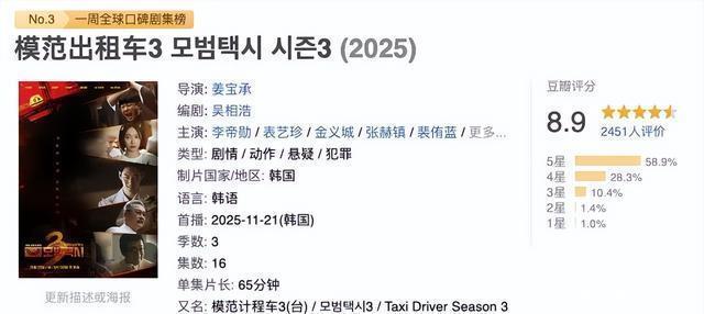 在首尔黝黑的夜幕下,一辆看似无为的 出租车 悄然穿梭于城市街巷。 但它并不是载客的器用,而是复仇的芒刃,专为那些备受轻侮的受害者而生。 四年前,一部聚焦 “代理复仇” 的局势级爽剧横空出世,凭借塌实的制作质料与对社会痛点的精确瞻念察,收效圈粉无数。 11月21日,万众瞩斟酌 《法度出租车3》重磅追忆 ,首播第一集就赢得了9.5%的高收视。 《法度出租车3》 TaxiDriver
