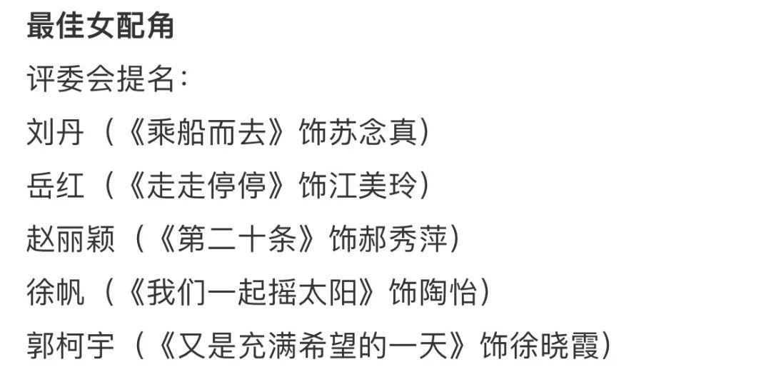 再来说说最好女破碎,本色上排查一下阿谁名单就知说念,这个奖便是赵丽颖和徐帆全部pk,不外赵丽颖和冯小刚的相关可以,徐帆不会动用阅历、后台跟她抢的。