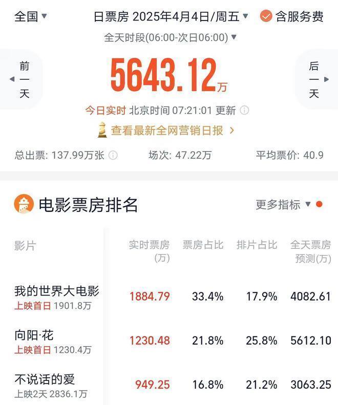 上映的第一天,《不讲话的爱》共收成了1400多万东说念主民币票房,以雄壮的上风治服了《哪吒2》,奏效拿下日票房冠军。