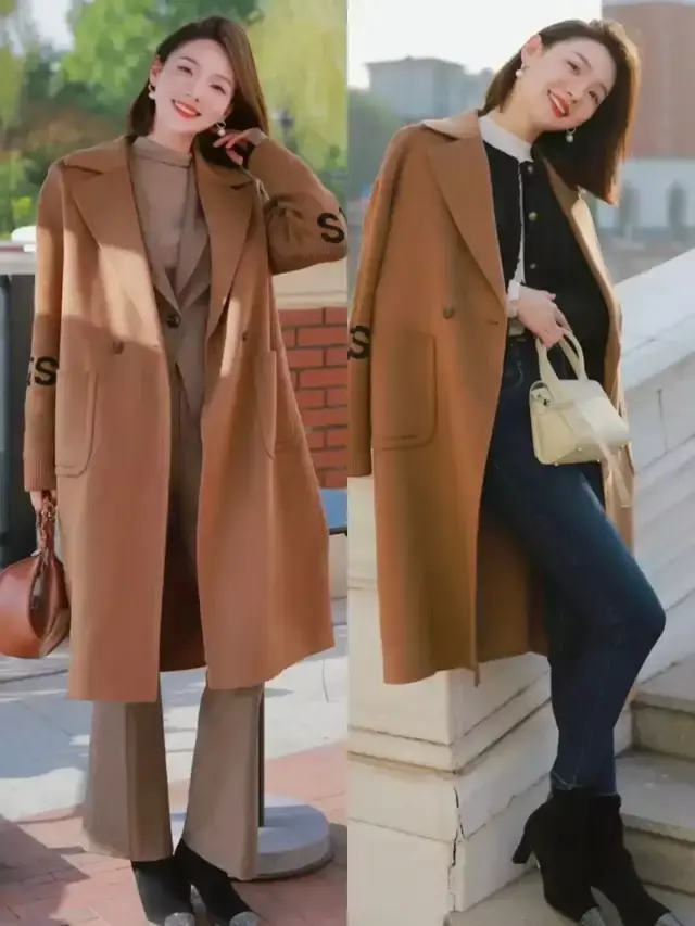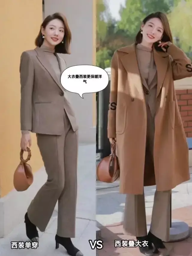 当你放工外出回家时,缅念念被外面的凉风吹到,就不错把你驼色的大衣外衣叠穿西服,让你秒变成皆市精英女白领。