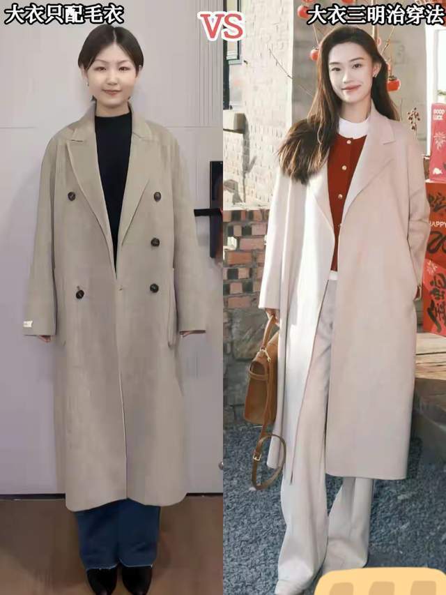 我们不光要懂得用大衣三明治穿法,还要会采用合适我方的一稔版型。